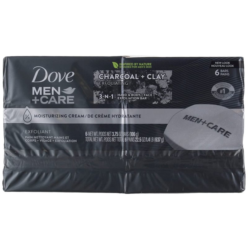 Dove, Men Bar Soap Charcoal + Clay, 4 Ounce (Pack of 6)