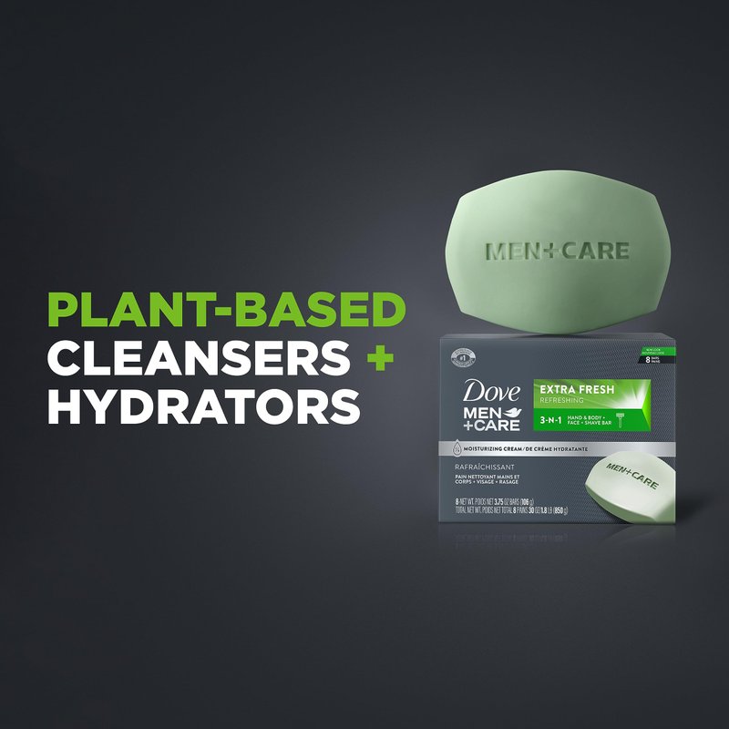 - 3 IN 1 FOR BAR CLEANSER FOR BODY, FACE, AND SHAVING: Dove Men+Care Extra Fresh Body and Face bar formulation is so hydrating and gentle on skin that you can also use it to wash your face or to shave