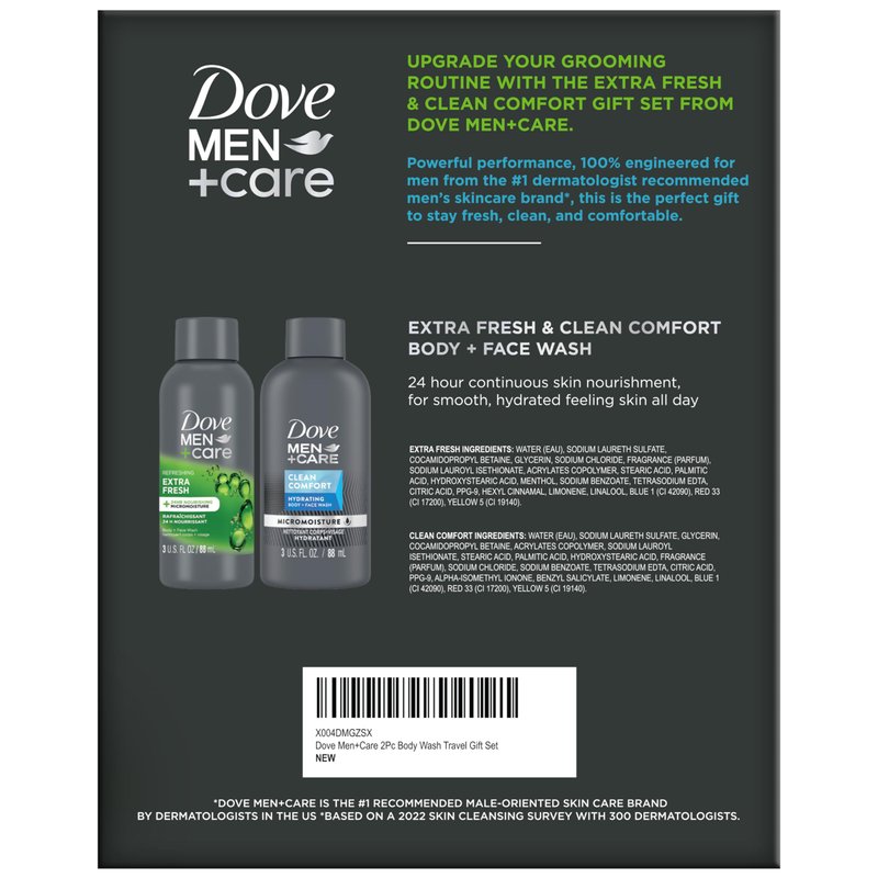 DOVE MEN + CARE Body & Face Wash Variety 2-Pack – Extra Fresh + Clean Comfort, Travel Essentials, 3 Oz Ea