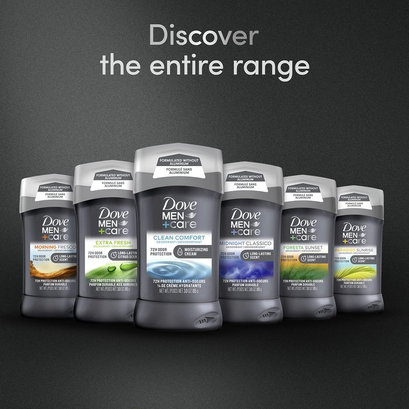 - Dove Men+Care Deodorant in Clean Comfort delivers aluminum-free protection for up to 48 hours; making it an effective deodorant stick for active men and underarm sweat