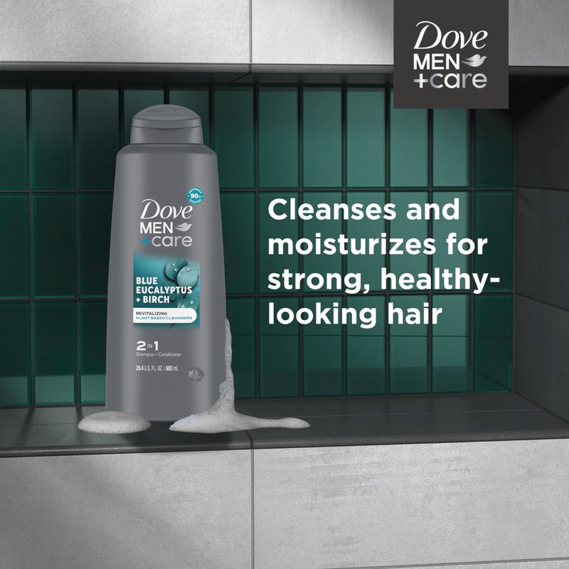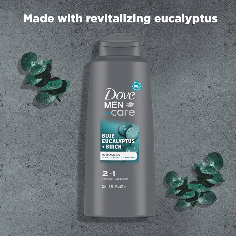 DOVE MEN + CARE Men 2 in 1 Shampoo and Conditioner Eucalyptus + Birch for Healthy-Looking Hair Naturally Derived Plant Based Cleansers 20.4 oz