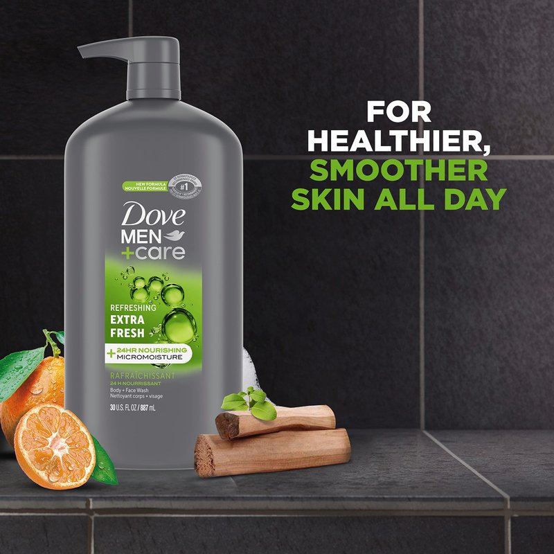 - FOR HEALTHIER, SMOOTHER FEELING SKIN ALL DAY: Dove Men+Care Extra Fresh men's body and face wash hydrates your skin to keep it feeling healthy and smooth all day