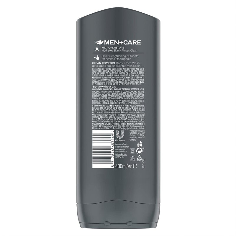 - Dove Men+Care Clean Comfort Body and Face Wash provides hydration for healthier, stronger skin