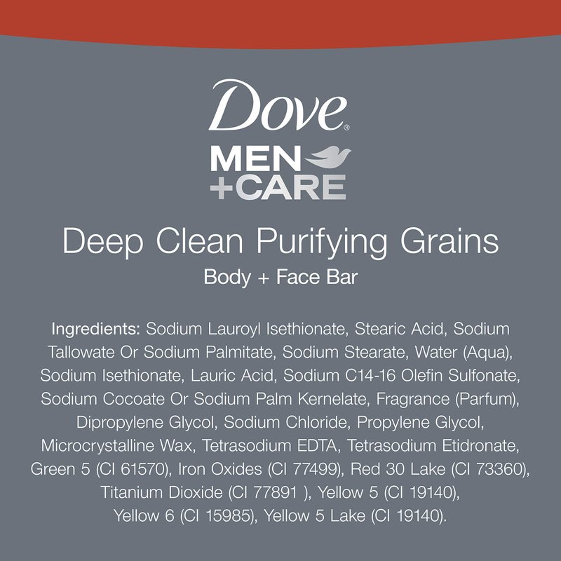 - Dove Men+Care Body and Face Bar thoroughly cleanses and hydrates skin for healthier, stronger skin versus regular soap. Deep Clean bar that effectively washes away bacteria, nourishes your skin.