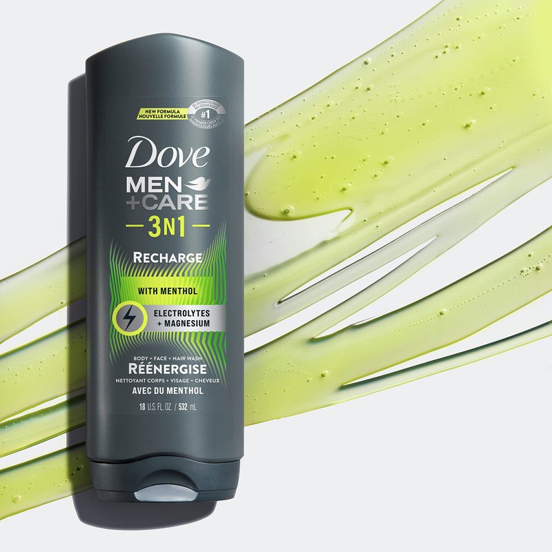 Dove Men+Care Post-Workout Body Wash For Men 3N1 Recharge With Menthol 18 oz