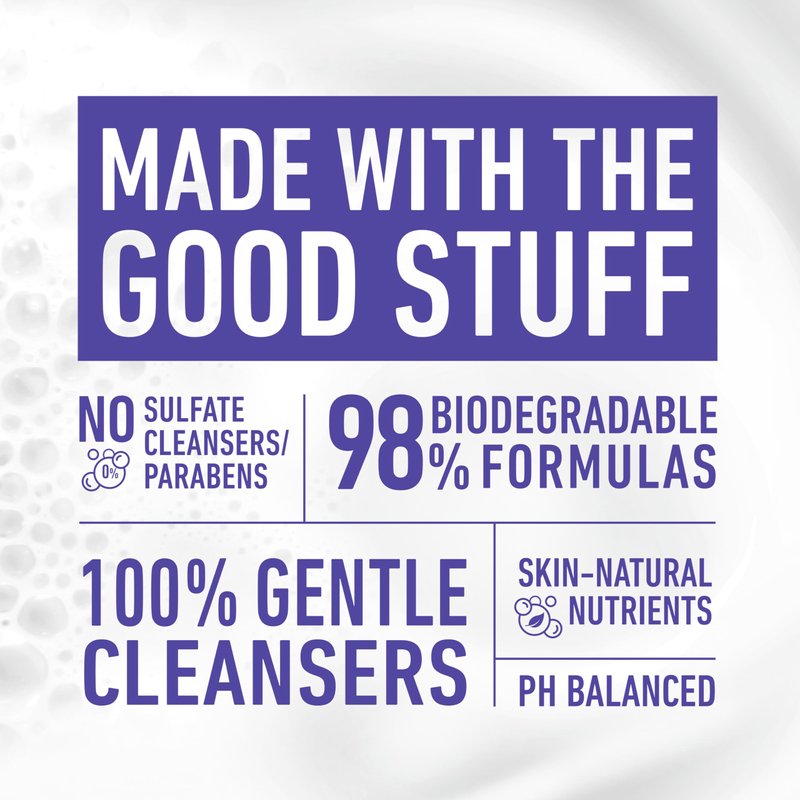 - MADE WITH THE GOOD STUFF: 100% gentle cleanser and 100% pure pleasure! This formula is pH balanced, made without sulfate cleansers/parabens, and is gentle enough for the whole body.