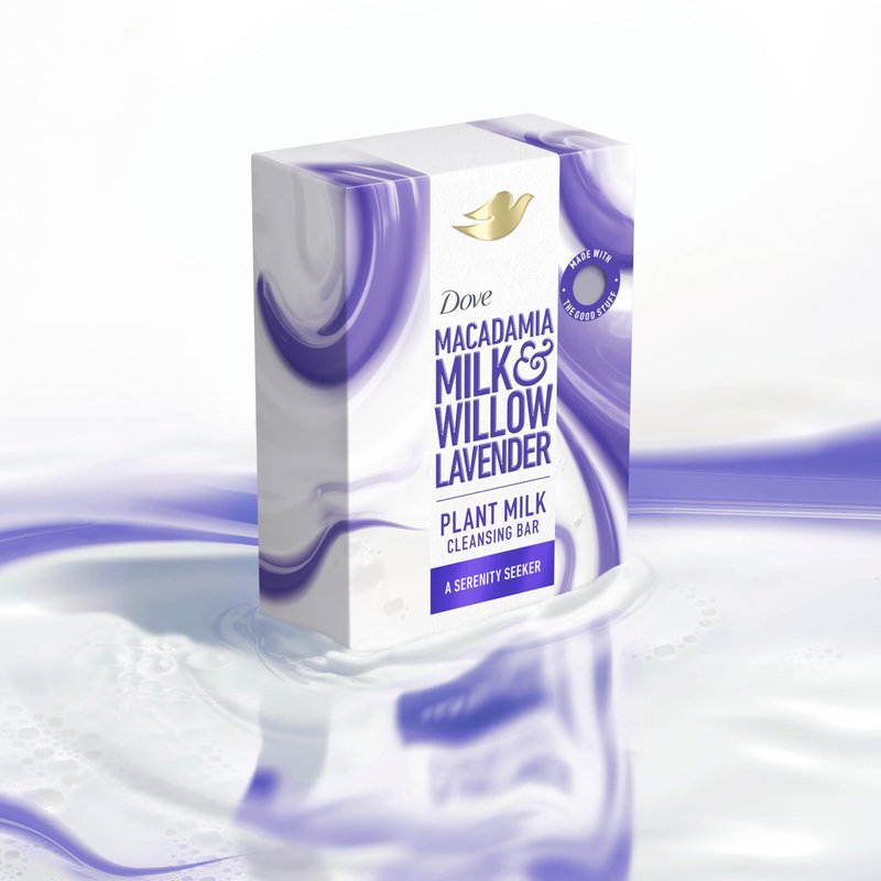 Dove Plant Milk Cleansing Bar Soap Macadamia Milk & Willow Lavender Serenity Seeker 4 Count for Moisturized Skin Gentle Cleanser, No Sulfate Cleansers or Parabens, 98% Biodegradable Formula 5 oz