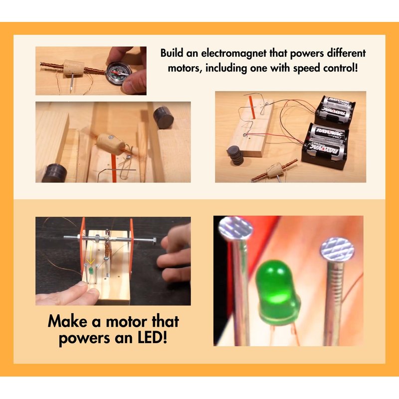 - EXPLORE AMAZING MAGNETS: Build different kinds of generators and motors--simple ones, a motor-generator pair, a motor with speed control, and a generator that powers an LED!