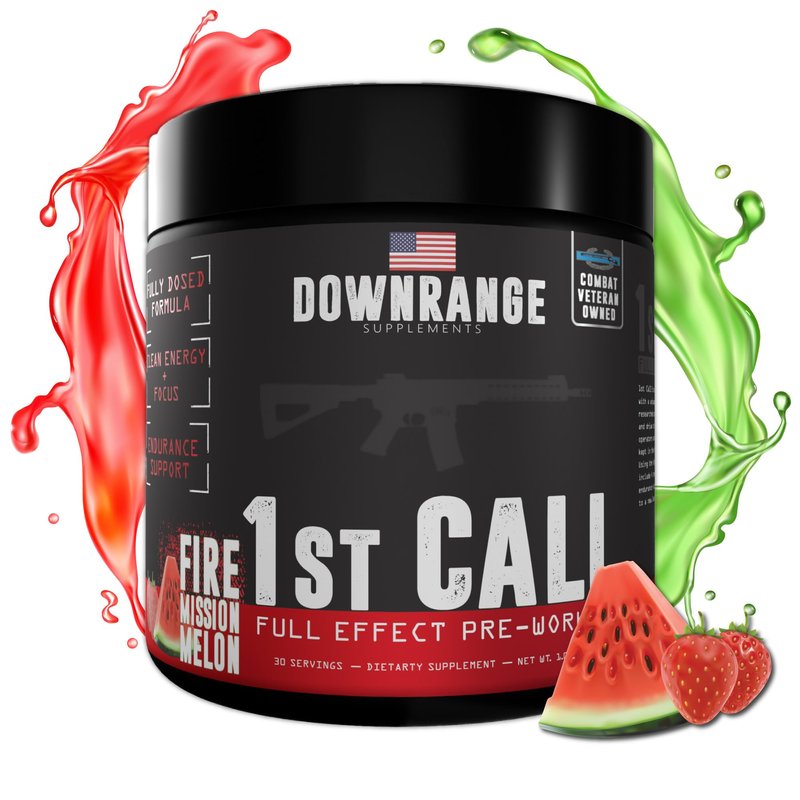 DownRange 1st Call Pre Workout Powder, Preworkout for Men & Women, Amino Acid Beta Alanine & Caffeine for Pump, Energy and Focus Support, 30 Servings (Strawberry Watermelon)