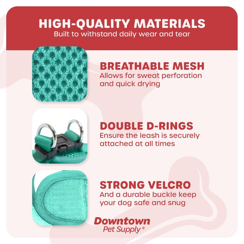 Downtown Pet Supply Step in Dog Harness for Small Dogs No Pull, Medium, Bermuda Blue - Adjustable Harness with Padded Mesh Fabric and Reflective Trim - Buckle Strap Harness for Dogs