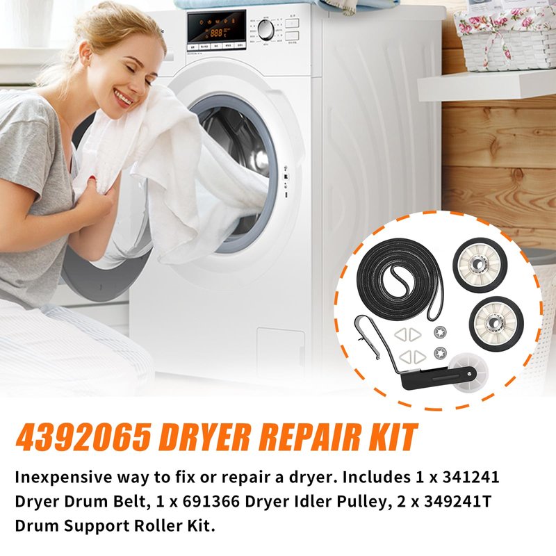 - 【FIXES THE PROBLEM】: If your dryer has the following problems, such as dryer is noisy, will not start, no heat or not enough heat, the drum has stopped turning. This may be a reminder that you need to replace the 4392065 dryer repair kit.