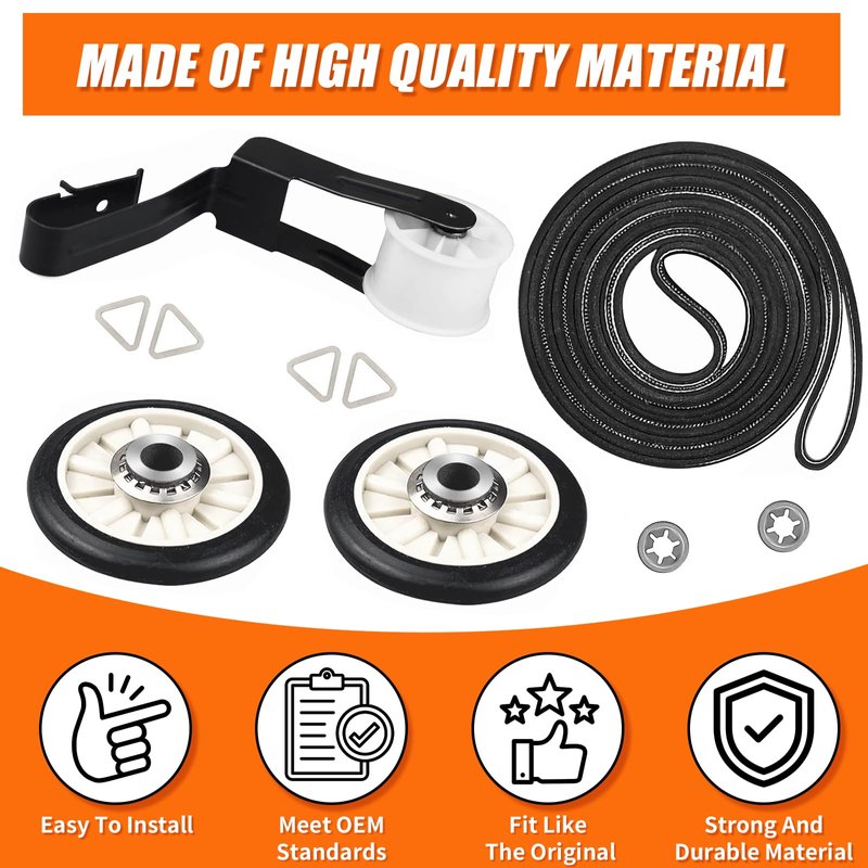 - 【PACKAGE INCLUDES】: 4392065 dryer repair kit includes 1 pcs 341241 Drum Belt, 1 pcs 691366 Idler Pulley, 2 pcs 349241T Roller. The dryer repair kit is made from high quality material for long lasting.