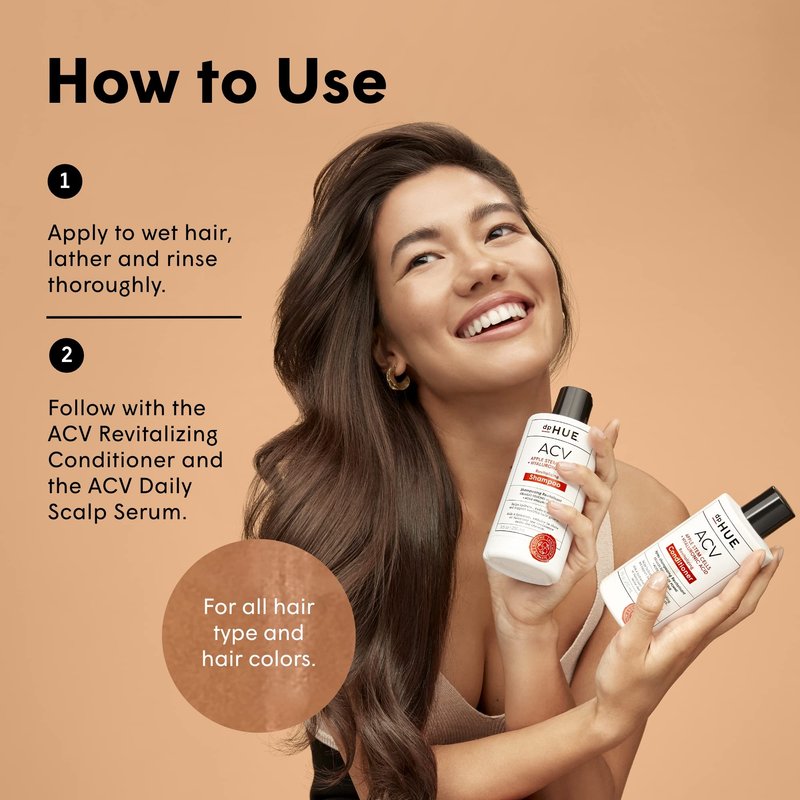 - HOW TO USE - Apply to wet hair, lather and rinse thoroughly. For best results, follow with the ACV Revitalizing Conditioner and the ACV Daily Scalp Serum.