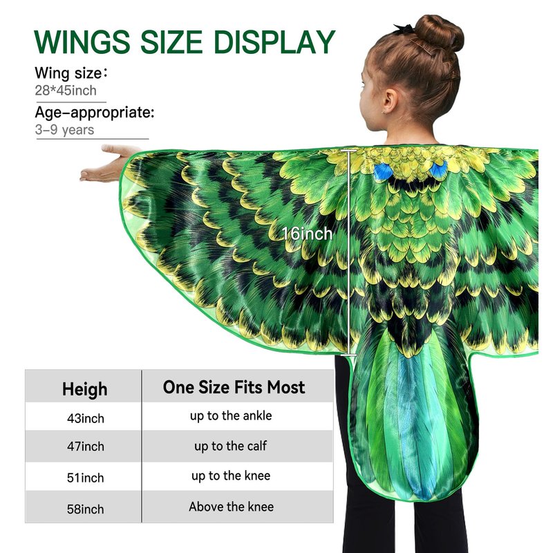 - Fly into Imagination: Give your child the gifts of bird wings costume and gratify their Imagination as they embrace the magic of being a bird. Our parrot wings costume can bring freedom, adventure, and endless possibilities to kids