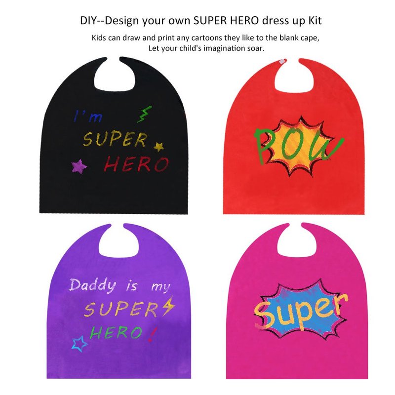 • DIY: Toddlers Kids can use colorful fluorescent pen to paint your favorite carton pattern and words on the capes. Use your and your kids imagination,Create what you want