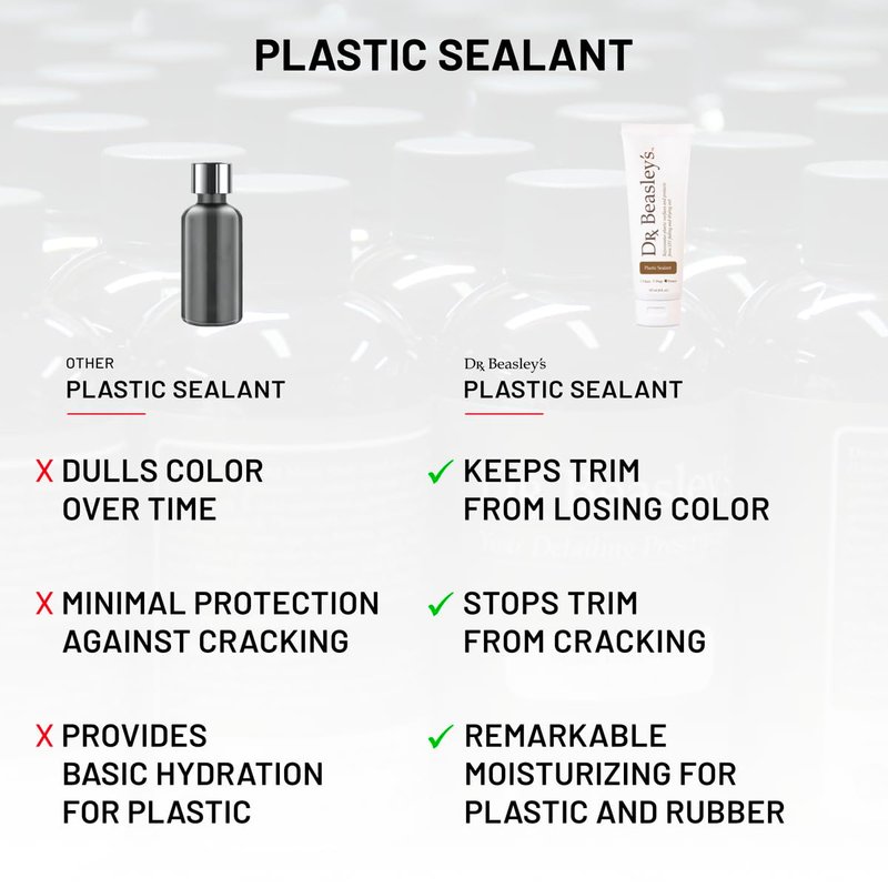 - Ultimate Protection for Your Car’s Trim - Plastic Sealant protects moldings, trim, bumpers, door handles, and mirror housings from UV fading and cracking while nourishing and moisturizing to restore color and feel. If your car spends a lot of time in the sun, you’ll want to grab a tube today.