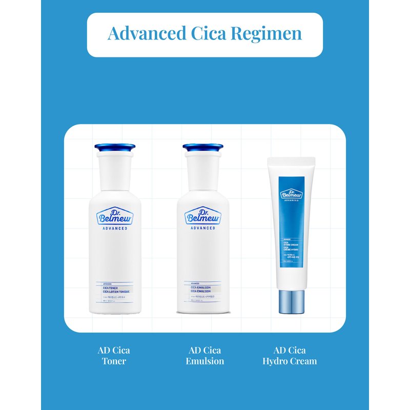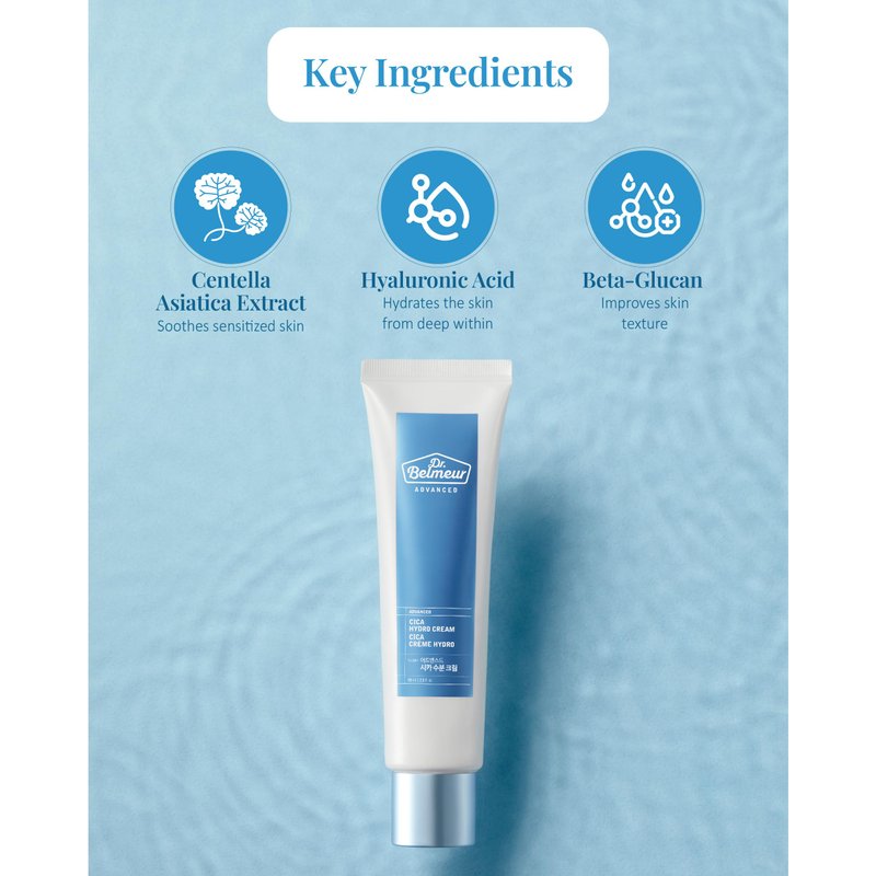- DR. BELMEUR ADVANCED CICA HYDRO CREAM (60ml/2fl oz x 2) - This cream calms sensitive skin and protects damaged skin with a lightweight, hypoallergenic formula ideal for daily use.