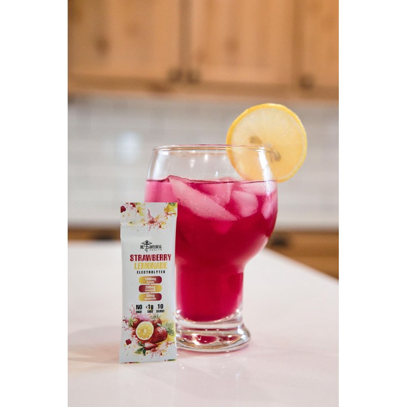 Introducing our brand-new Strawberry Lemonade Electrolyte Drink Mix! This refreshing and delicious blend is the perfect way to stay hydrated and revitalized on the go. Crafted by Dr. Botanical Health, our electrolyte drink mix is made with high-quality, natural ingredients, including electrolytes, vitamins, and minerals. With no added sugars, artificial colors, or flavors, it's the perfect choice for athletes, fitness enthusiasts, busy professionals, or anyone looking to maintain a healthy lifestyle. Our electrolyte drink mix is designed to replenish your body's essential fluids and minerals, which are lost through sweating, physical activity, and everyday activities. Whether you're working out, hiking, or simply spending a hot day outdoors, our drink mix will help you stay hydrated and perform at your best. With its refreshing strawberry lemonade flavor, it's the perfect way to stay energized and refreshed throughout the day. So why wait? Try our Strawberry Lemonade Electrolyte Drink Mix today and experience the difference for yourself!