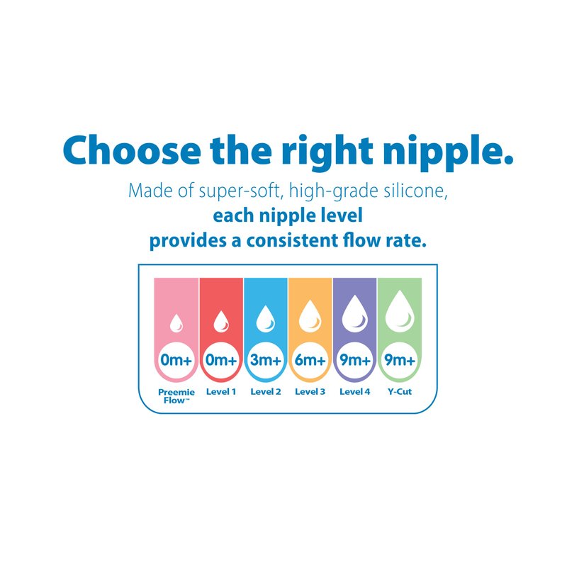 - CONSISTENT FLOW RATE. Each nipple provides the same consistent flow rate so both you and baby know what to expect. Every baby has their own preferred flow rate and is not necessarily a reflection of their age or size.