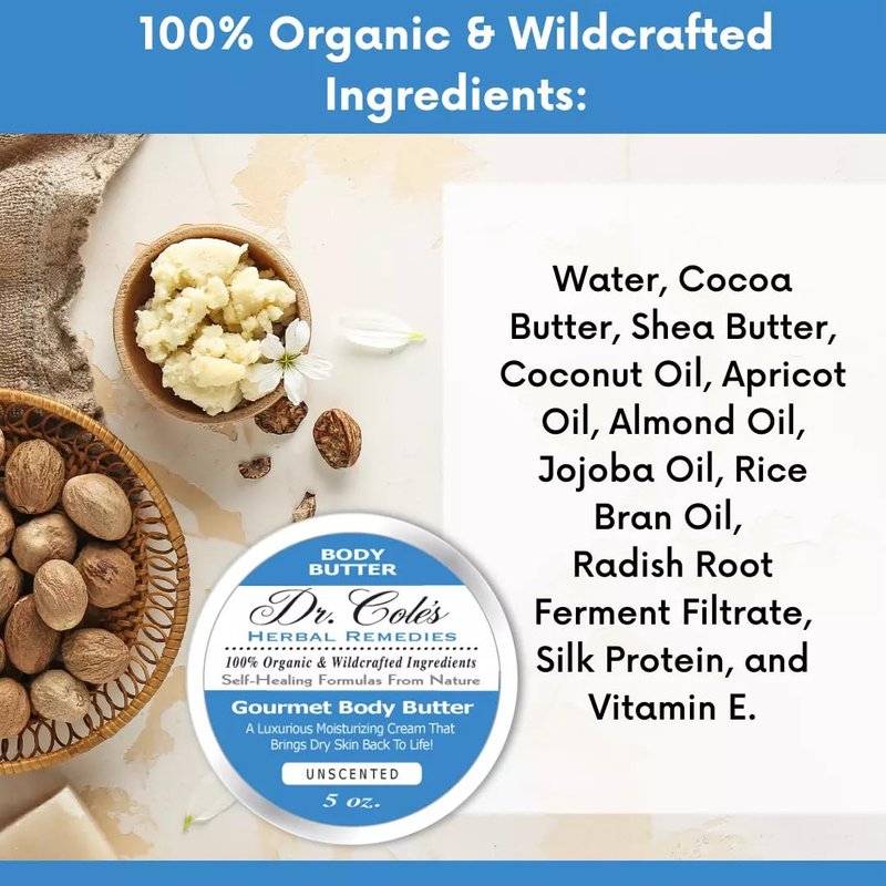Dr. Cole's Gourmet Body Butter β Luxurious Organic Moisturizing Cream to Revitalize Dry Skin | 100% Organic & Wildcrafted Ingredients | Hand, Foot, and Body Moisturizer