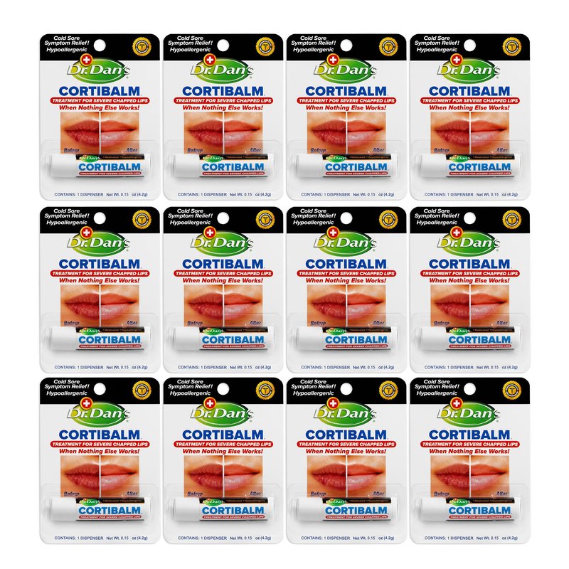 Dr. Dan's Cortibalm- 12 Pack - for Dry Cracked Lips - Healing Lip Balm for Severely Chapped Lips - Designed for Men, Women and Children