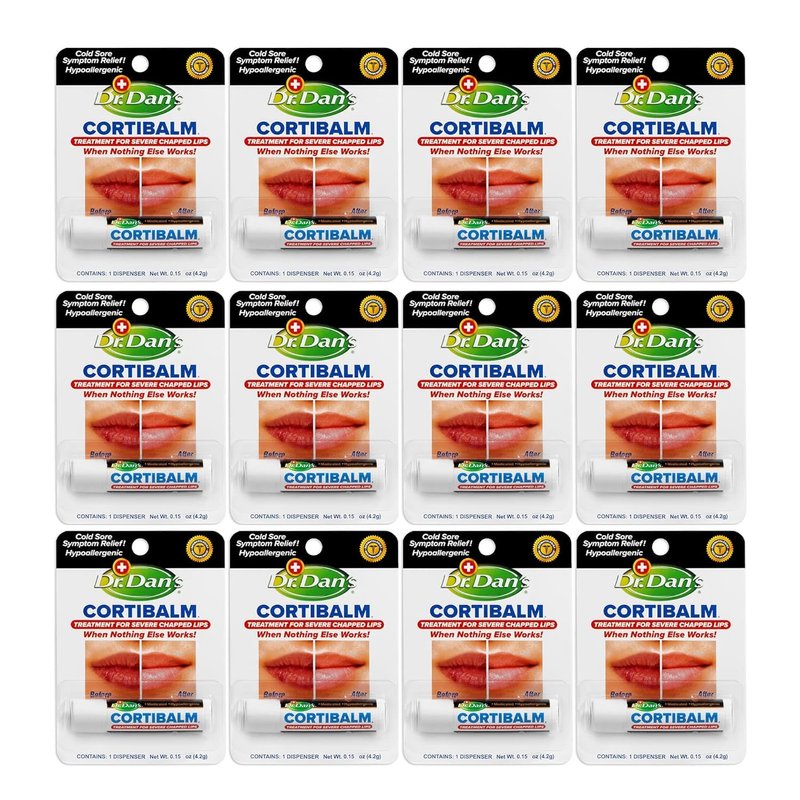 Dr. Dan's Cortibalm 12 Pack for Dry Cracked Lips - Healing Lip Balm for Severely Chapped Lips - Designed for Men, Women and Children - 12 Pack