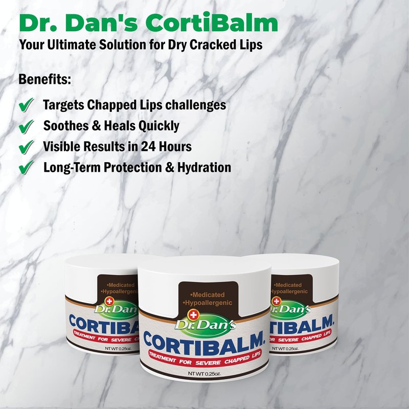 - DISCOVER CORTIBALM: Dr. Dan's lip care is a simple blend of beeswax, petroleum jelly, mineral oil and 1 % hydrocortisone. Less is more!