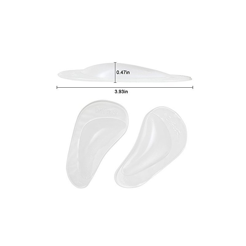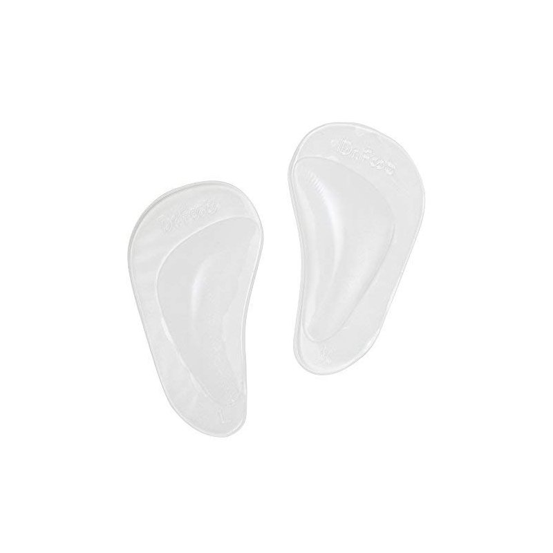 Dr. Foot's Arch Support Cushions provide support to arch, Relieve Pain from Metatarsalgia and Plantar Fasciitis. Made of soft and durable medical-grade polyurethane gel material, safe to human body. Self-adhesive design can be reused and washed. Before applying, please make sure that there is enough space in your shoes to accommodate the Cushions. Remove plastic film on bottom surface, stick it on the shoes and make the Support Spot under your arch. Reduces pain from plantar fasciitis, tendonitis, heel spurs, and heel neuromas. Relieves heel and foot pain. Massaging PU gel pad is ideal for arch support and comfort. Washable and durable. Latex free