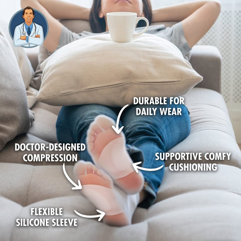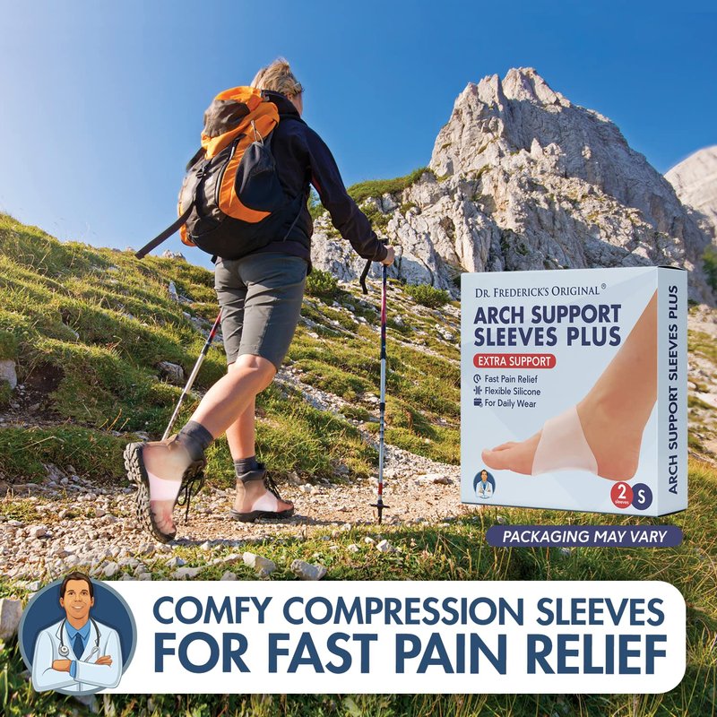 Dr. Frederick's Arch Support Sleeves for Foot Pain Relief from Plantar Fasciitis, Flat Feet - Silicone, Unisex, Small/Medium
