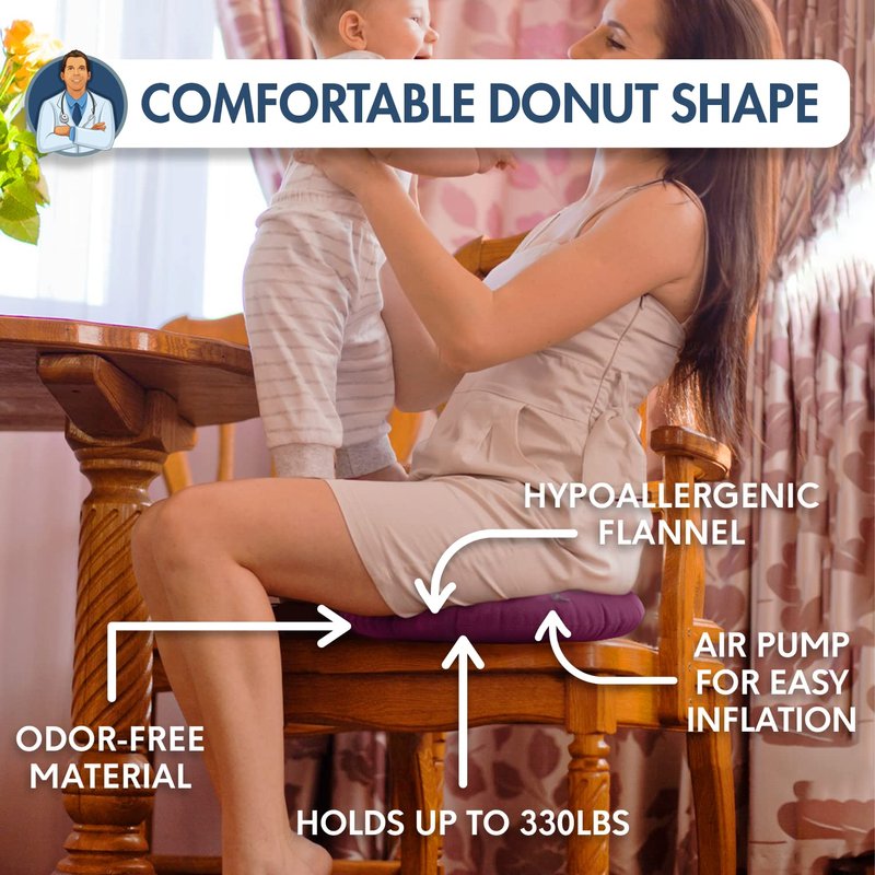- Easy To Inflate And Adjust: Our Donut Cushion comes with a small hand air pump, to make inflation a breeze! We don’t think you should struggle to inflate your cushion, or fight shortness of breath when you’re already fighting pain. Our donut pillow is easy to inflate, and will be ready for use in minutes. We recommend playing with the amount of inflation to find your desired level of firmness and comfort.