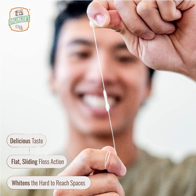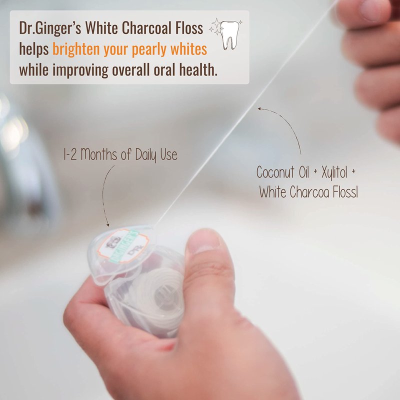 - DR. GINGER'S WHITE CHARCOAL DENTAL FLOSS Help whiten the hard-to-reach spaces with a flat and smooth floss action. Flavored with tasty organic coconut oil and peppermint. Enough floss to last one to two months of daily use. Packaging includes 32yd box, 3ct