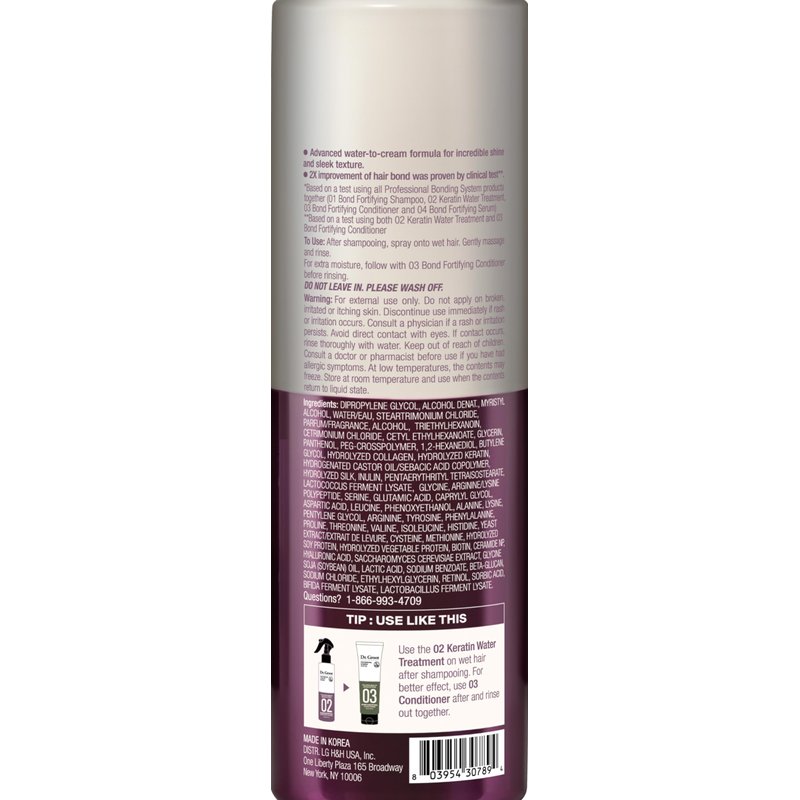 - Clinically proven to visibly repair and measurably thicken the look of hair in just one use* *Based on a clinical test using all Professional Bonding System products together: Shampoo, Keratin Water Treatment, Conditioner, Instant Repair Serum.
