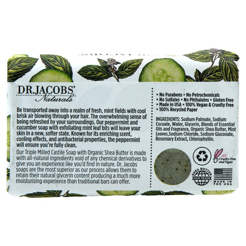 Dr Jacobs Naturals, Triple Milled Loofah Exfoliating Castile Bar Soap (Pack of 6) - Free of Parabens, Sulfates, Synthetics, Gltuen and GMO (Minty Cucumber Mojito)