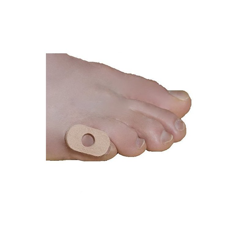 Center hole placed over corn or hammertoe creates a barrier to reduce foot gear pressure and transfers discomfort away from the corn. Creates a barrier between skin and footwear to help reduce pain. This can be use for Tender bony prominences, Hammertoes, Padding for inside shoes and Seed Corns. Stays in place under socks and hose without taking shoe space.