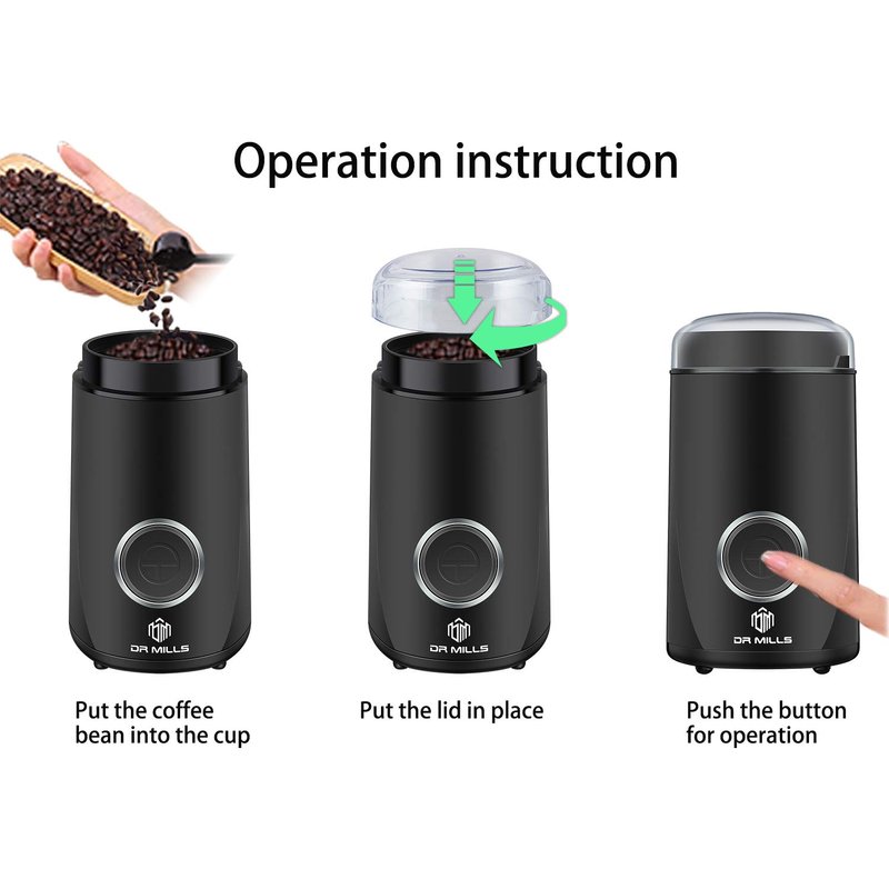 DR MILLS DM-7441 Coffee Grinder Electric,Coffee Bean Grinder,Spice Grinder,Blade & cup made with SUS304 stianlees steel (Black)