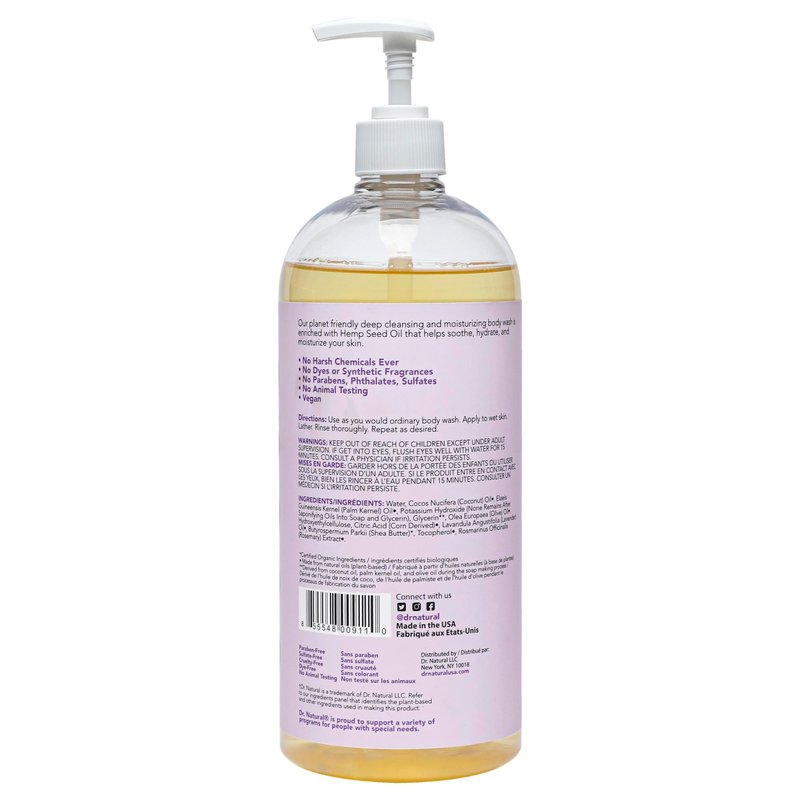 Dr. Natural Calming Lavender Oil Body Wash - Dry Skin Moisturizing Natural Body Wash with Shea Butter and Coconut Oil - For Family and Pets - 32 oz