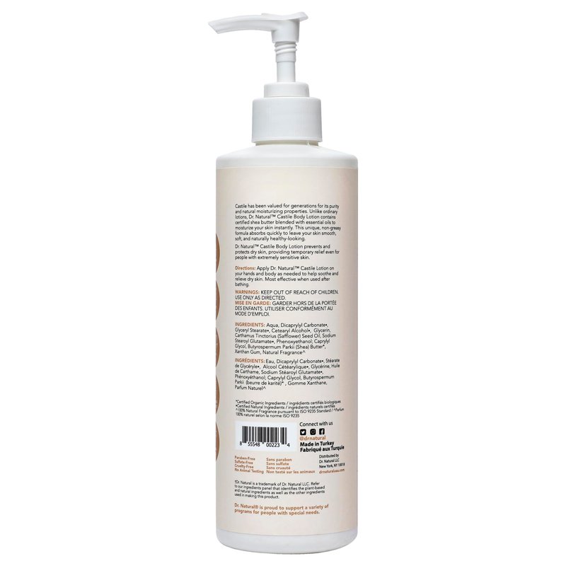 Dr. Natural Castile Body Lotion, Shea Butter, 16 oz - Plant-Based - Paraben-Free, Sulfate-Free, Cruelty-Free - Made with Organic Shea Butter - Non-Greasy - Body Lotion for Dry Skin