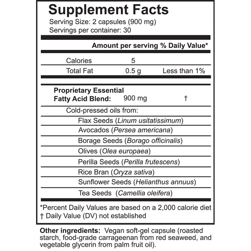 - A VEGAN SOURCE of OMEGA 3, 552 mg, with perfectly balanced amounts of OMEGA 6 and OMEGA 9 that provides the complete and balanced Essential Fatty Acids you need without the smell or taste of fish.
