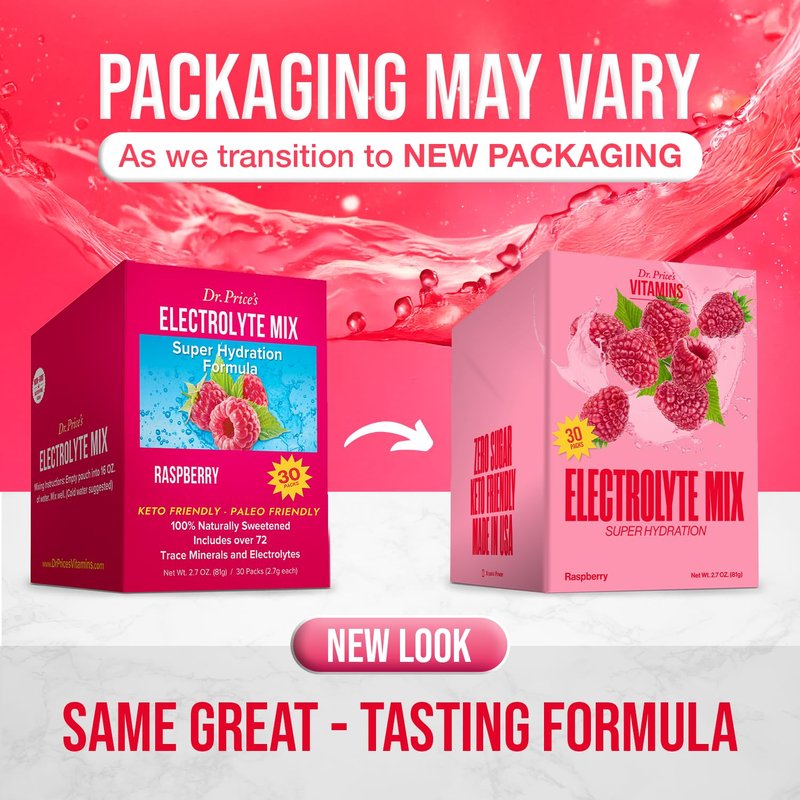 Dr. Price Electrolytes Powder Packets - Electrolytes No Sugar - Hydration Packets - Electrolyte Mix - Keto Electrolytes - (30 Packets) Fasting Electrolytes - Water Enhancer, Sports Drink - Raspberry