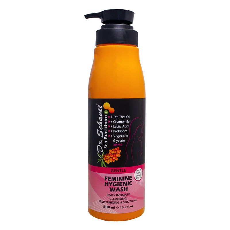 DR. SCHAVIT Feminine Wash for Sensitive Skin – Gentle PH Balance Intimate Wash - Daily Hygienic Intimate Skin Wash with Sea Buckthorn and Tea Tree Oil – 16.9 Fl.Oz (500ml)