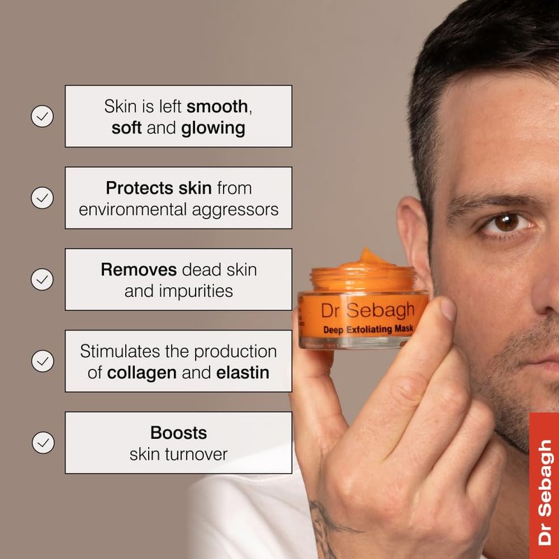 Unlock the secret to radiant, youthful skin with Dr Sebagh's Deep Exfoliating Mask – a must-have in your skincare routine. This transformative face mask takes you on a journey to a smoother, more vibrant complexion, blending carefully curated ingredients designed to pamper your skin. Harnessing the power of Lactic Acid, this hydrating face mask gently exfoliates, and removes dead skin cells and impurities. It also hydrates and helps in accelerating cellular turnover, ensuring your skin appears revitalised. Azelaic Acid present in this face mask tackles acne-causing bacteria, regulating cell proliferation. Perfect for achieving a clear, blemish-free and even skin tone, whilst addressing hyperpigmentation. This exfoliating face mask helps protect against environmental aggressors such as UV exposure. It also defends, fortifies, improves cell communication, and fights free radicals – ensuring your skin remains resilient against daily challenges.