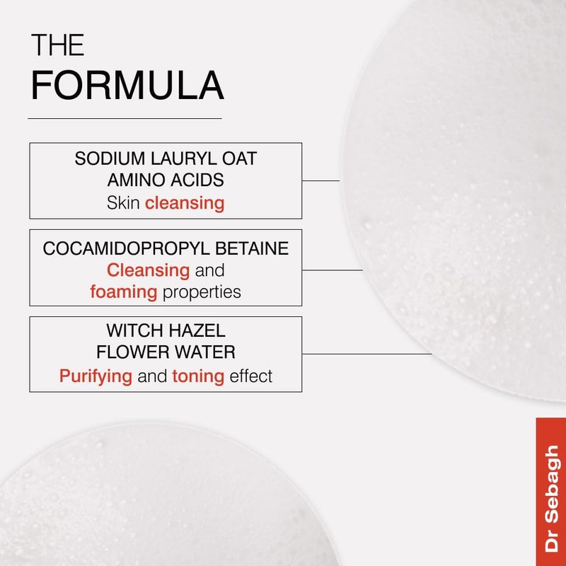 Discover a new level of skincare luxury with Dr Sebagh's Foaming Cleanser, an exquisite addition to your daily routine that goes beyond traditional cleansing. Immerse yourself in the gentle, yet effective care of this top-rated cleanser, meticulously designed to leave your skin thoroughly cleansed and luxuriously hydrated. Enriched with Witch Hazel Flower Water, this hydrating foaming cleanser is a testament to Dr Sebagh's commitment to skincare excellence. Its signature touch of elegance ensures a meticulous cleanse without compromising your skin's natural moisture, making it suitable for all skin types. Voted 'Best wash-off cleanser' by InStyle, this foaming facial cleanser boasts an award-winning formula that revitalises your skin. Cleansing, toning, and leaving your skin feeling soft and balanced, it transforms your daily skincare routine into a spa-like experience. Tailored for all skin types, Dr Sebagh's Foaming Cleanser invites you to indulge in a soothing skincare ritual. Experience the gentle embrace of cleansing, toning, and refreshing – a moment of self-care that your skin truly deserves. Expertly apply the indulgent foam directly to your skin without water, massage in circular motions, wait a few seconds, and either wipe off or rinse with warm water. This Foaming Cleanser features a two-in-one cleansing and toning formula that has been recognized by InStyle, Harpers Bazaar and the Gentleman’s Journal. It effectively purifies the skin, removing even the most stubborn traces of makeup, including mascara. Transform your daily routine into a luxurious experience, and let your skin indulge in the richness of this exceptional foaming cleanser.