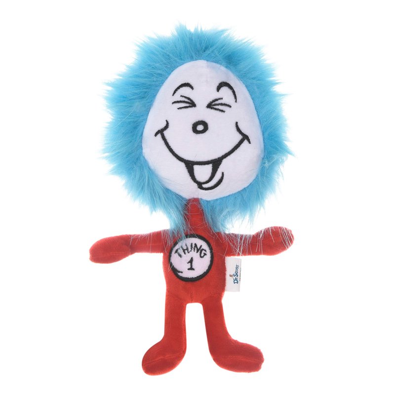 • CAT IN THE HAT THING 1 DOG TOY –Dogs will sit and dogs will stay but the happiest dogs will play all day. Give your dog this soft, cute, and cuddly Thing 1 dog toy from The Cat in the Hat book by Dr. Seuss and watch as the fun begins
