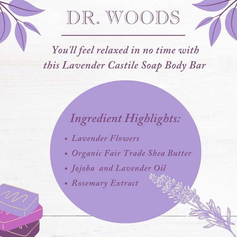 Dr. Woods Exfoliating Lavender Bar Soap with Organic Shea Butter, 5.25 oz (Pack of 6)