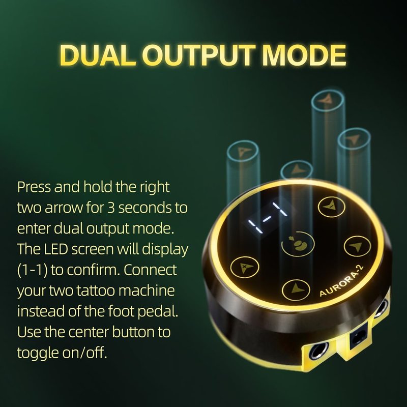 - 【Innovative Design】The Dragoart Aurora 2 tattoo power supply boasts touch buttons for effortless operation, dual outputs for switching between liner and shader tattoo machines, and a magnetic anti-slip base for enhanced stability. The colorful LEDs indicate the current voltage range, adding a vibrant touch to your workspace.