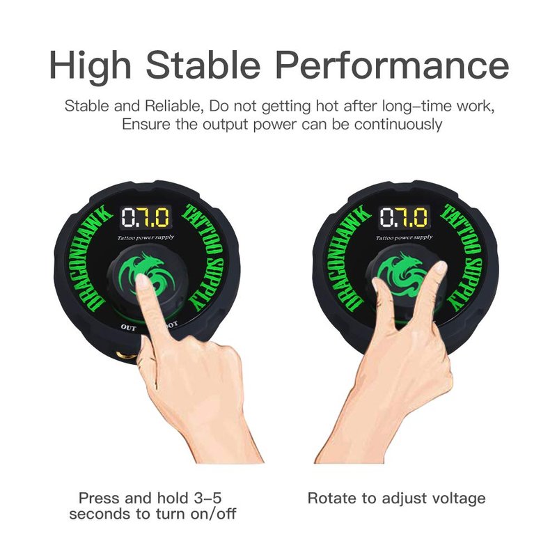 - Tips: Upon receiving this power supply, please remember to press the button for 3-5 seconds to light it up. This simple step ensures a smooth start and proper functionality. Whether you are a seasoned professional or just starting out, this power supply is designed to enhance your tattooing experience and deliver exceptional results.