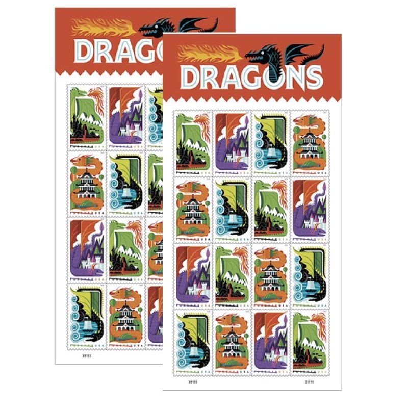 Dragons - 2018 USPS Forever First Class Postage Stamps (2 Sheets of 16)
