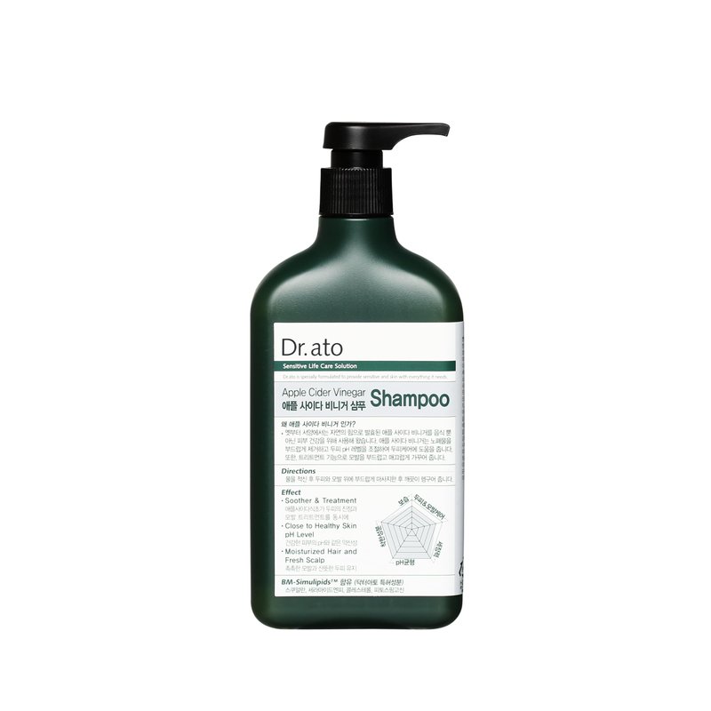 Dr.ato Apple Cider Vinegar Shampoo - pH5.5 Hypoallergenic Hair Shampoo with AHA in Apple - Skin and Eye Irritation Tested - All Safe Ingredients, Allegen-Free, Paraben Free, 10.5 fl.oz