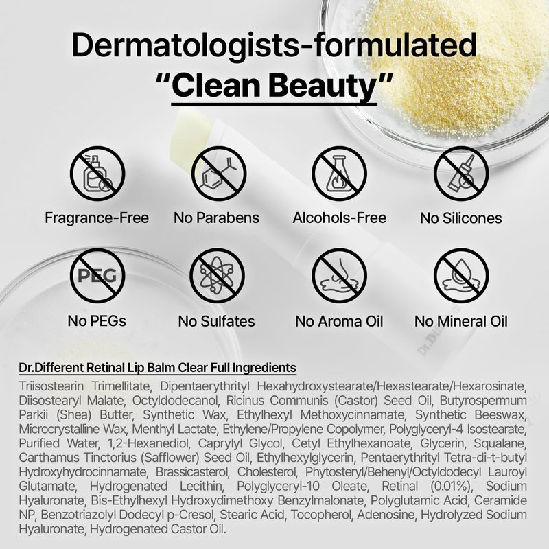 Dr.Different Retinal Lip Balm, Anti-Wrinkle Lip Treatment with Deep Hydration & Long-Lasting Moisture, K-Skincare made by Korean Dermatologist, 0.14oz (Clear)