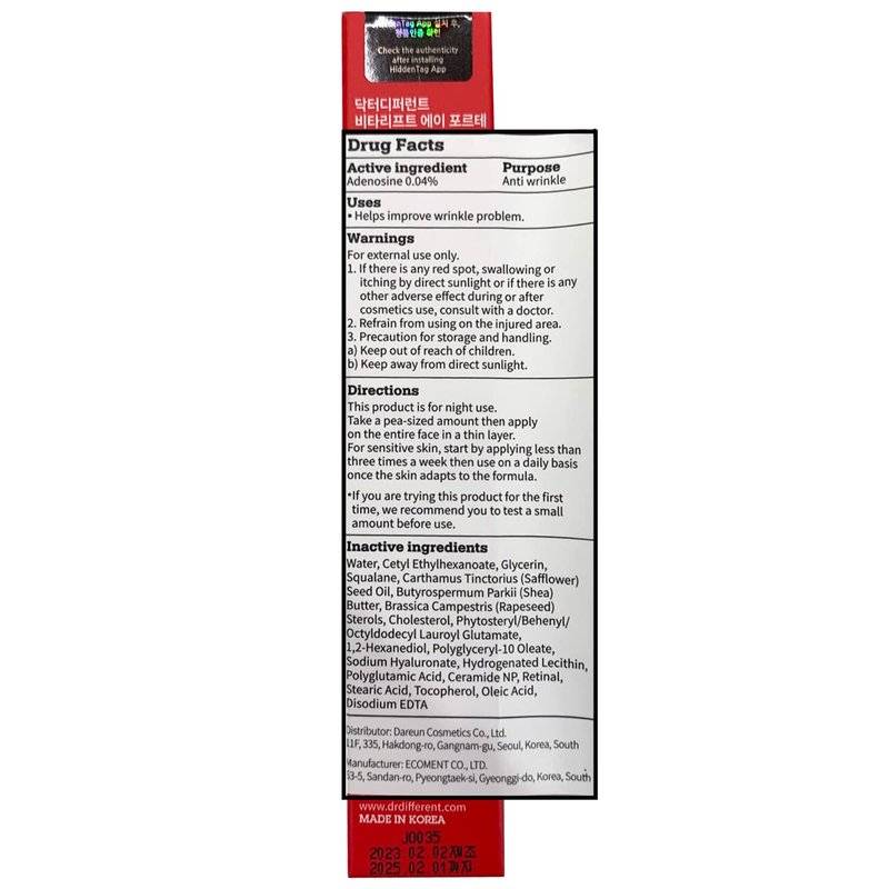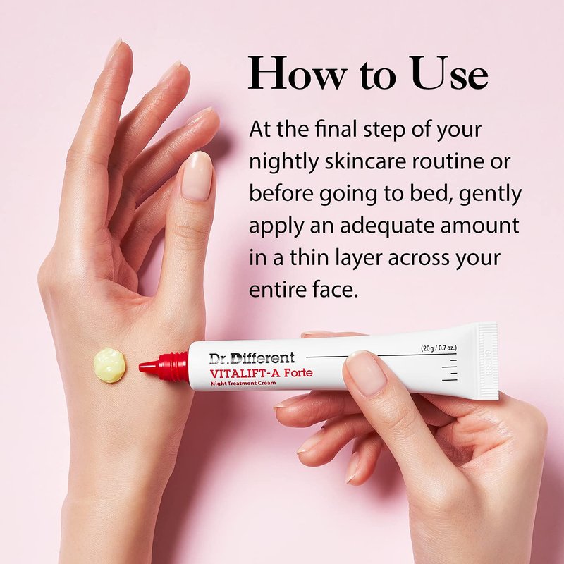Dr.Different VITALIFT-A Forte - Retinal Intensive Anti-Aging Night Cream for Lifting & Firming-Anti-Wrinkle Face Moisturizer Cream with Vitamin A & Hyaluronic Acid Reduce Wrinkles & Fine Lines 0.7oz.
